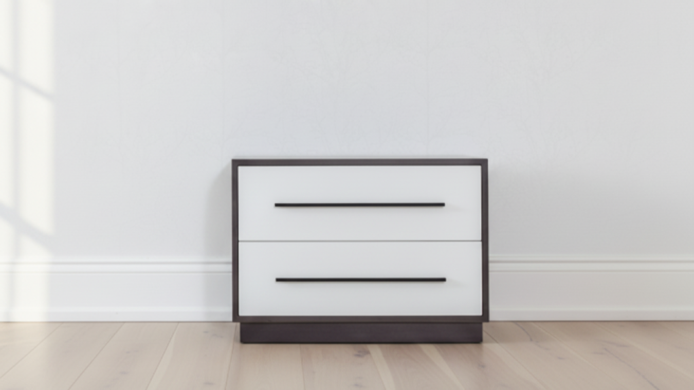 Finish: two-tone, midnight stain (AF06) body, fiji oak laminate on drawer